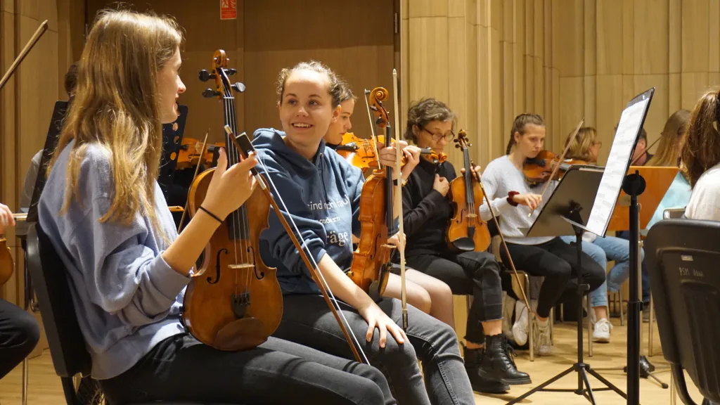 In September 1952, the idea of a European Parliament began – the construction of the „House of Europe“ began. The 60 musicians from France, Germany and Poland therefore came together again from September 10th to 18th, 2022, 70 years later: to deal with the Franco-German history of violence in the border region of Palatinate and Alsace, to commemorate the democratic awakenings and solidarity between the French, Germans and Poles at the Hambach Festival, but above all at concerts at the Hambach Castle, at the locations of the music schools in Landau and Wissembourg and then above all in the European Parliament in Strasbourg. This is also a thank you in important places of democracy, a reason for joy and celebration, an opportunity for encounters and exchange.